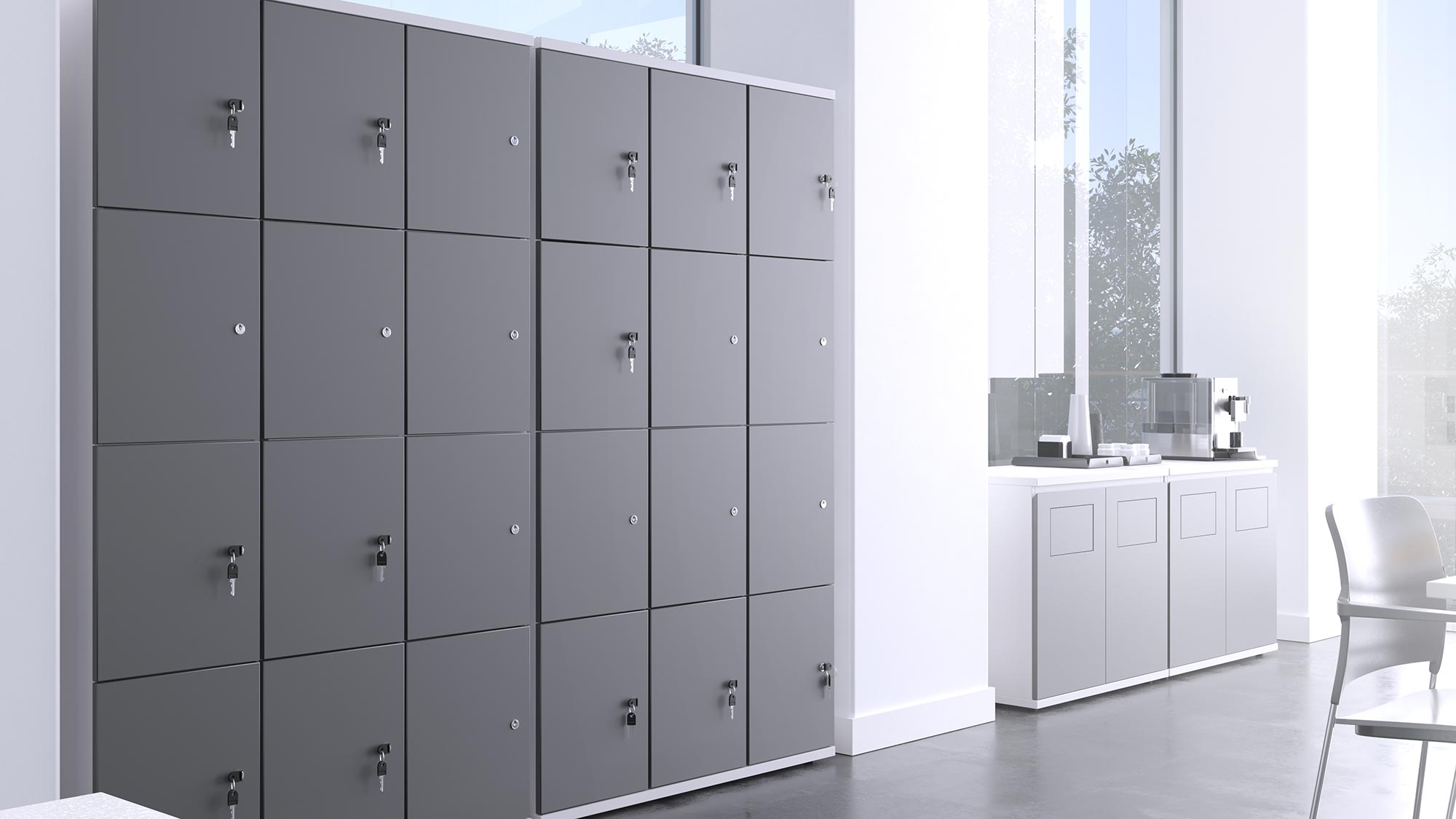 Privacidade e segurança que otimiza espaços. Locker proporciona espaço de armazenamento individual com praticidade, com opção de fechadura-puxador ou fechadura eletrônica.